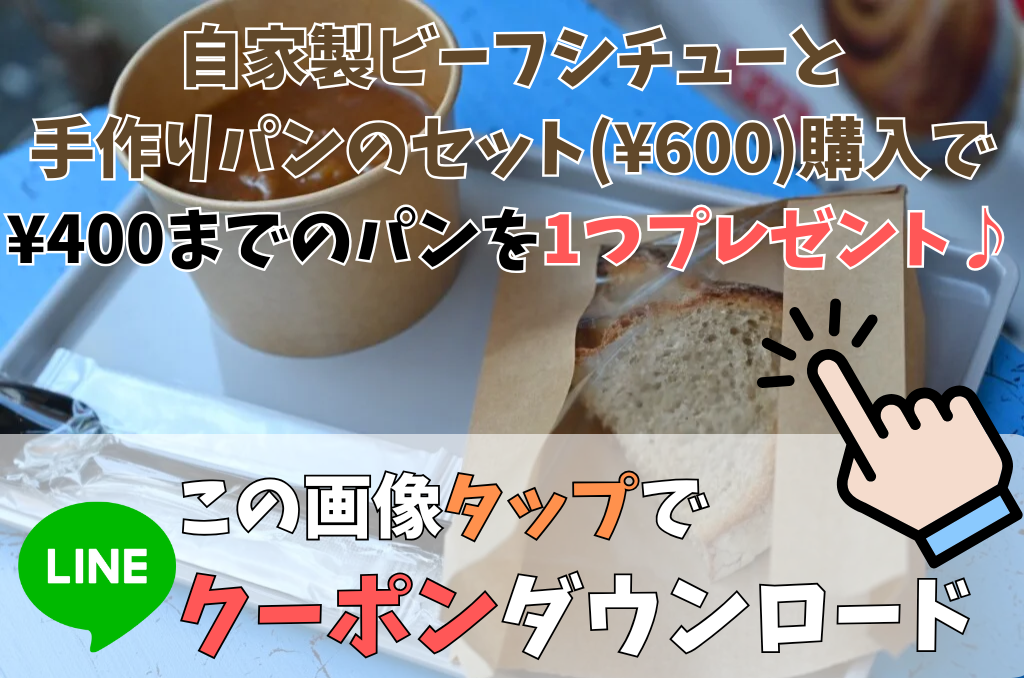 【ベーカリーシナノ】自家製ビーフシチューと手作りパンのセットを購入で400円以内のパンプレゼント!